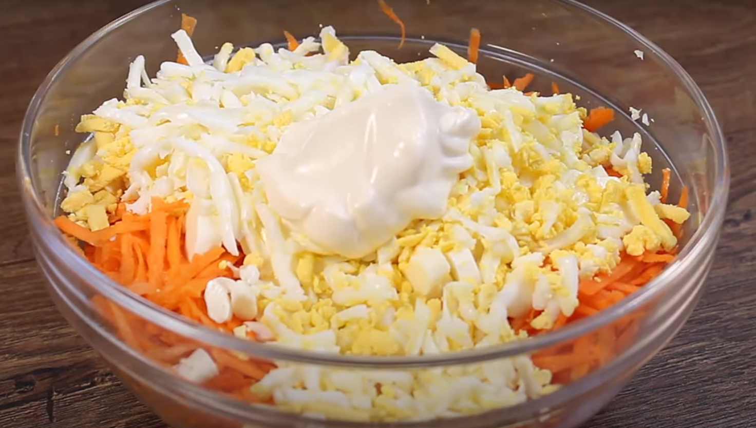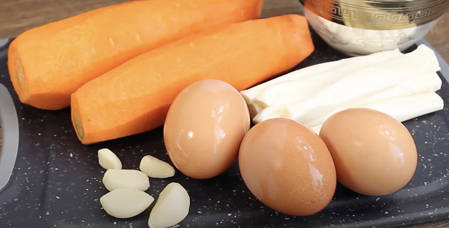 Włóż marchewki do lodówki i pozwól im odpocząć przez jakiś czas. Dodać dowolny ser, w tym ser wędzony. Posiekać go drobno lub zetrzeć na tarce.