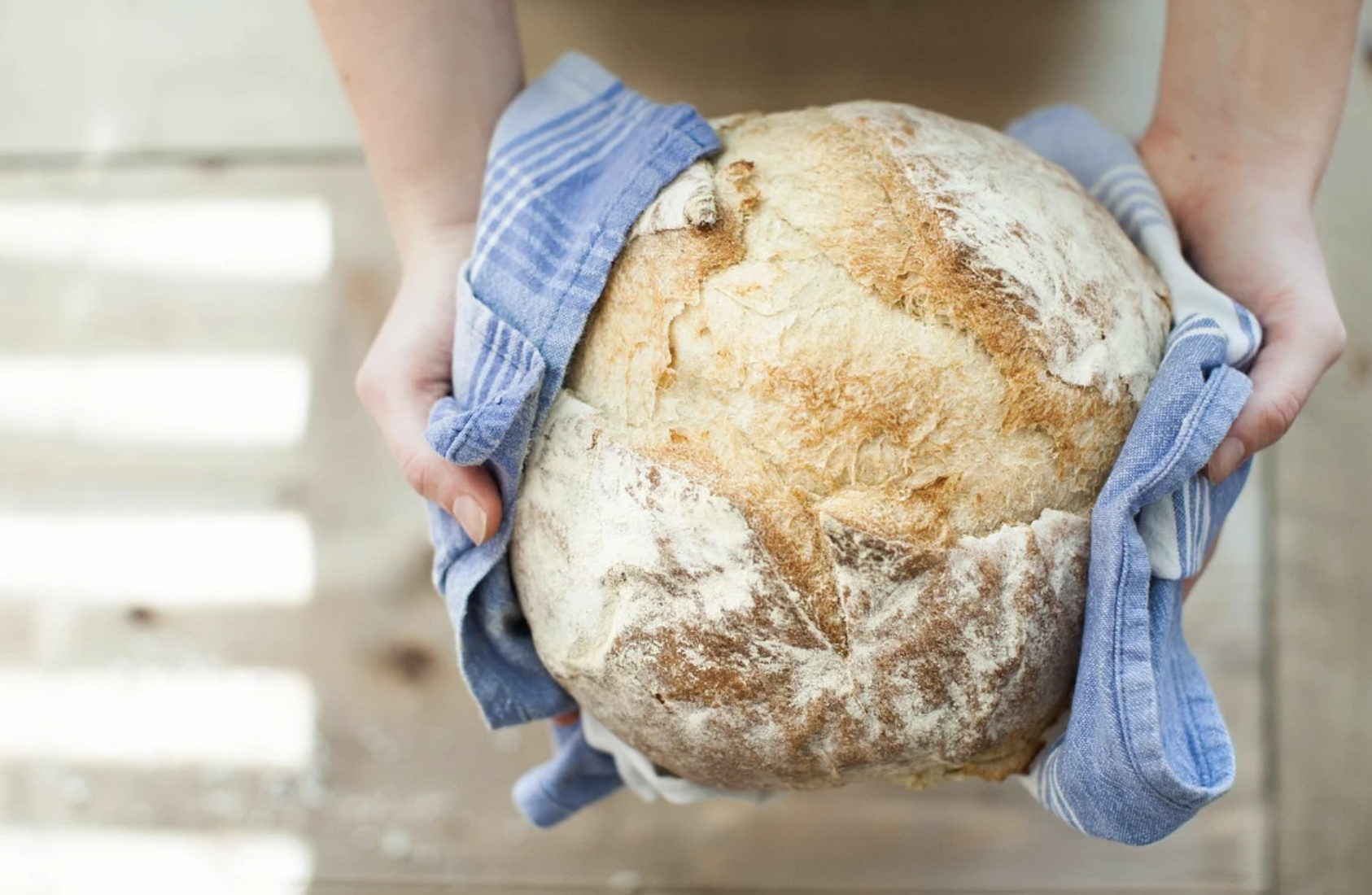 Oprósz ręce mąką i uformuj ciasto w kształt bochenka, używając oprószonych mąką rąk. Połóż delikatnie na blasze wyłożonej papierem do pieczenia. Oprósz mąką i odstaw na 15 minut. Piecz chleb w piekarniku przez 10 minut z funkcją góra+dół i włączonym wentylatorem w temperaturze 220 stopni C.