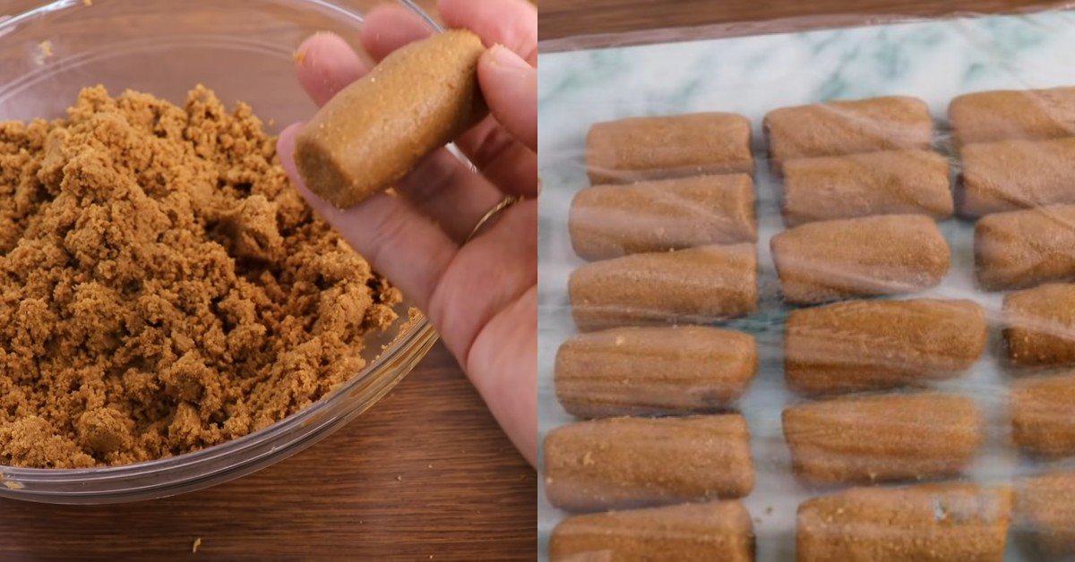 Rozpocznij od zmielenia herbatników na małe kawałki. W tym celu warto skorzystać z blendera. Wsyp je do miski, a następnie dodaj do niej masło orzechowe. Następnie ugniataj wszystko razem, aż do uzyskania jednolitej masy, która będzie elastyczna, miękka, i delikatnie wilgotna, którą następnie uformujesz w kształt roladek.