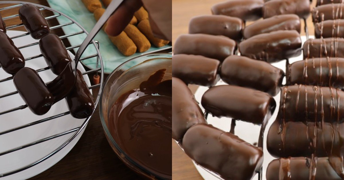 Rozpuść czekoladę, tak, aby jej forma była płynna, bez grudek. Każde ciasteczko zanurz w czekoladzie, tak, aby oblała je z każdej strony. Potem odłóż je, aby nadmiar czekolady mógł spłynąć. Po wystygnięciu, możesz udekorować ciasteczka według własnych upodobań, np. dodając do nich orzechy czy owoce.
