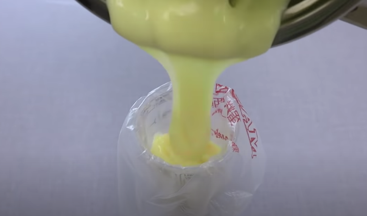 Najlepiej zacząć od masy, ponieważ musi lekko wystygnąć. W garnku średniej wielkości wlać mleko i wsypać oba cukry. Wymieszać. Następnie wbić jajko oraz wsypać skrobię kukurydzianą. Wszystko dokładnie połączyć i postawić garnek na kuchenkę.