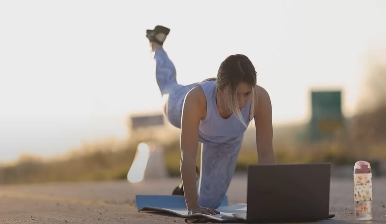 Będąc na czworaka zejdź do pozycji klęcznej. Pociągnij stopę w bok, następnie wróć do pozycji wyjściowej, a potem do tyłu. Ćwicz najpierw prawą, potem lewą nogą. Dłonie masz mieć na ramionach, kolana ułożone pod katem prostym, plecy wyprostowane, a mięśnie napięte. Ćwiczenie powtarzaj przez 30 sekund po prawej i lewej stronie.