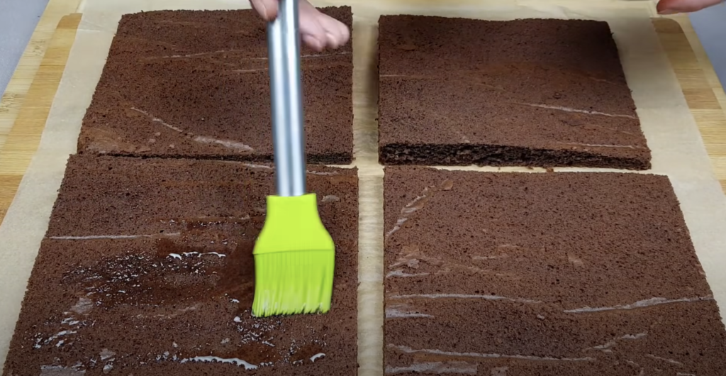 Każdą z nich posmaruj syropem, który przygotujesz uprzednio, mieszając i gotując ze sobą 50 g cukru w 100 ml wody. Gotuj przez ok. 2 minuty, a następnie odstaw do ostygnięcia. Na samym końcu dodaj do syropu 2 łyżki koniaku.