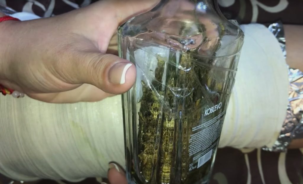 W szklanym słoiku lub butelce umieść świeże liście łopianu. Aby wzmocnić jego właściwości lecznicze, zalej je alkoholem. Pozostaw mieszaninę w ciemnym miejscu na 10 dni. Po tym czasie nalewka będzie gotowa.