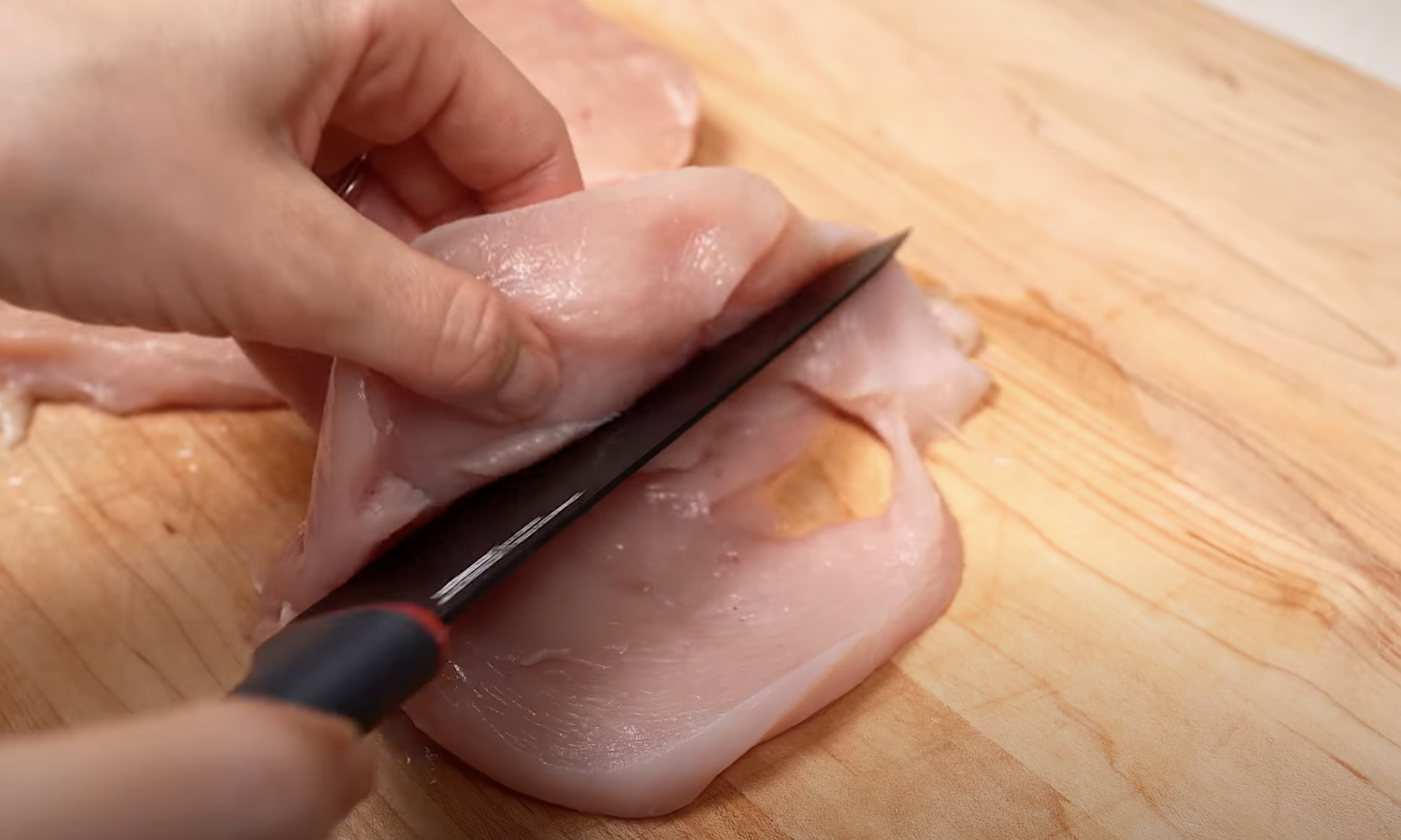 Piersi należy przekroić wzdłuż na pół, na około 3/4 pierwotnej długości.