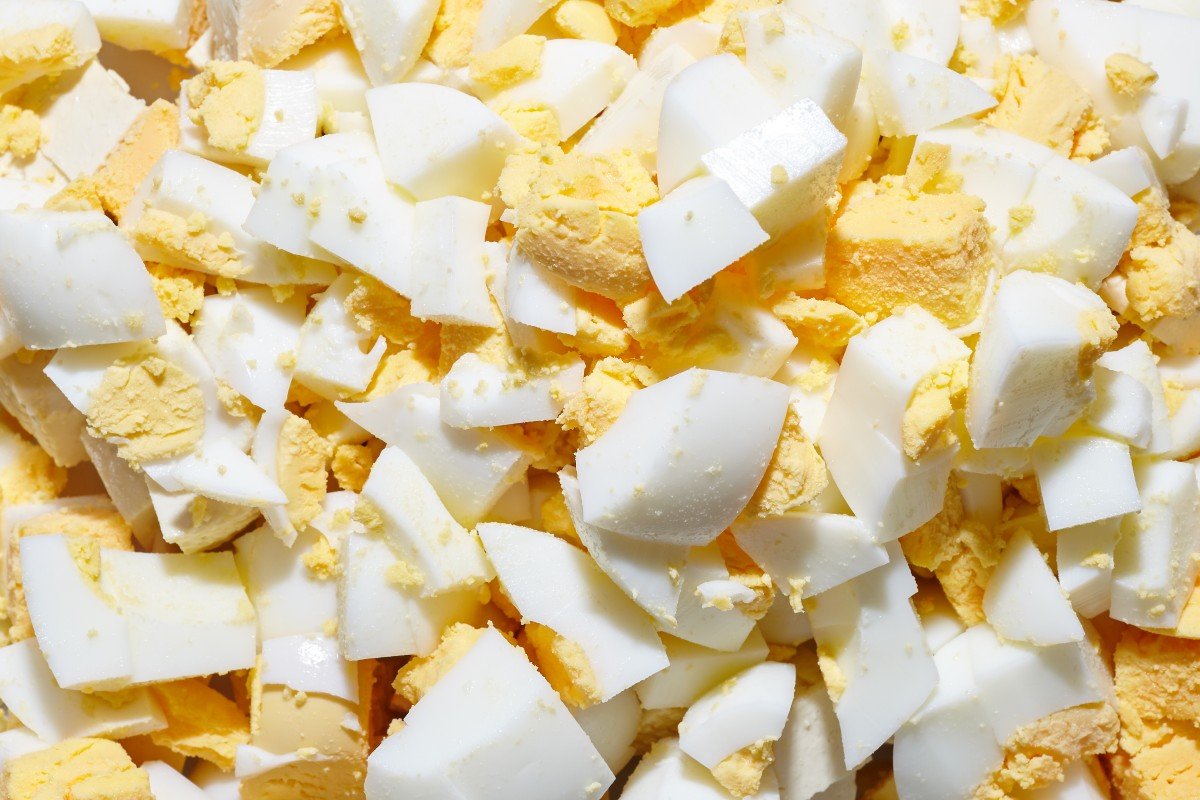 Wymieszaj majonez z musztardą i posiekanym koperkiem, aby uzyskać sos. Posolić i popieprzyć do smaku. Ugotowane jajka pokroić w mniejszą kostkę. Powtórzyć proces z ogórkami. Wszystko połączyć.