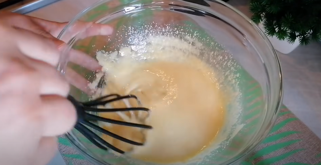 Wymieszaj cukier z żółtkami, dodaj masło, nadal mieszając.