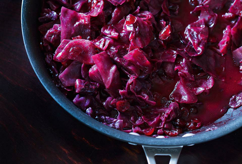 Całość zagotuj i duś pod przykryciem na małym ogniu przez 2-2,5 godziny, od czasu do czasu zamieszaj. Pod koniec gotowania zwiększ ogień na maksimum i doprowadź do wrzenia. Przez kilka minut odparowuj niepotrzebny płyn. Tak przygotowana kapusta czerwona najsmaczniejsza jest na następny dzień.