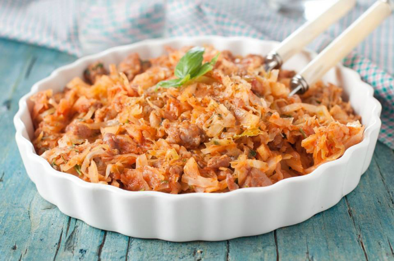 Garnek przykryj pokrywką i duś 1 godzinę na średnim ogniu od czasu do czasu mieszając. Gdy kapusta będzie już miękka dodaj mięso i całość jeszcze gotuj kilka minut. Gotowe! Duszona kapusta to ulubiony przez wielu dodatek do obiadu. Sycący, aromatyczny, podawany na ciepło rozgrzeje każdego.
