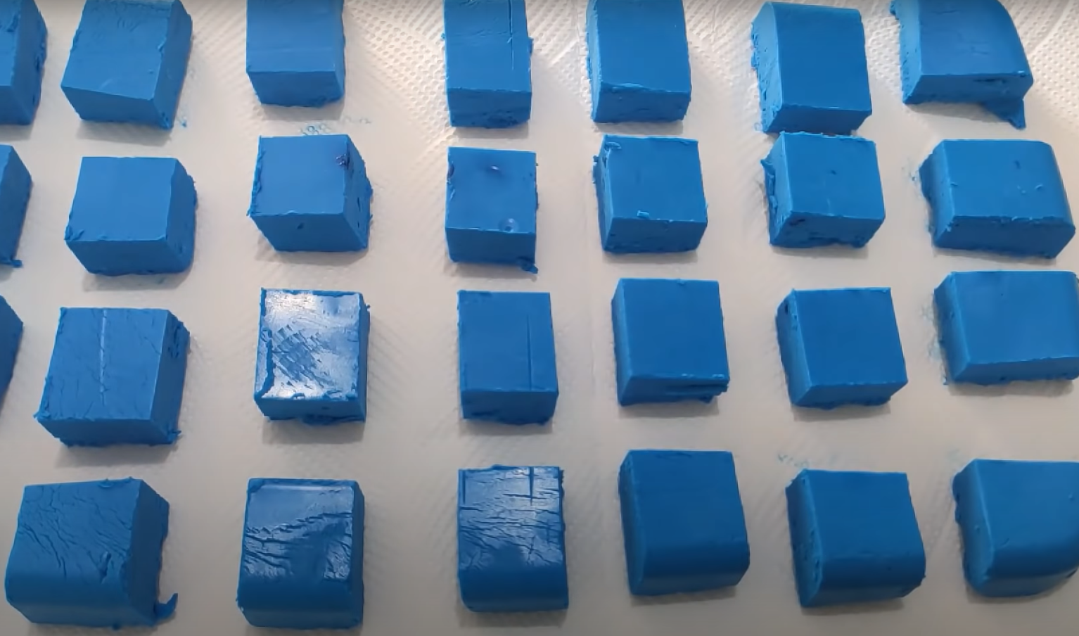 Na sam koniec do takiej masy wsypać trzeba łyżkę sody oczyszczonej, precyzyjnie wymieszać i przełożyć do plastikowej miski. Miskę przykryć należy następnie pokrywką i zaczekać na stężenie masy. Kolejnym krokiem będzie przełożenie masy na ręcznik papierowy i podzielenie na niewielkie kostki.