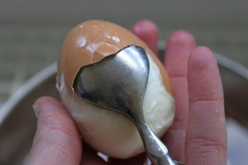 Przy użyciu zwykłej kuchennej łyżki z łatwością obierzesz ugotowane jajko.