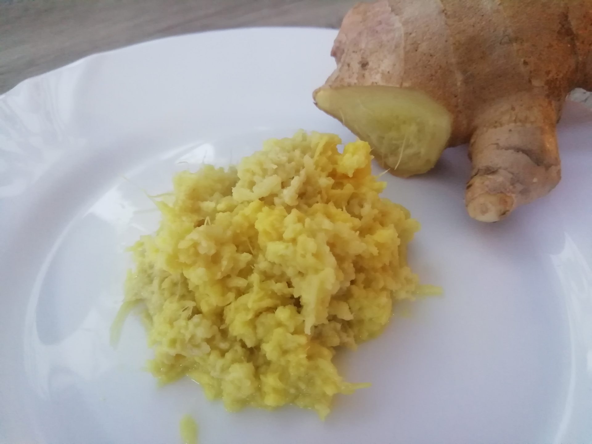 Imbir oczyszczamy łyżeczką, mielimy lub ścieramy na drobnych oczkach na tarce i dodajemy do garnuszka.