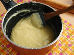 Podczas robienia kremu budyniowego mieszamy ze sobą mleko, cukier waniliowy, żółtko, mąkę i skrobię. Tak przygotowaną masę gotujemy a następnie studzimy. Po przestygnięciu delikatnie dodajemy masło za pomocą łyżki.