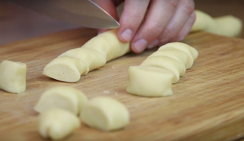 Tak przygotowany walec należy pokroić na 2 do 3-centymetrowe kawałki, które z kolei formujemy w kształt kulek.