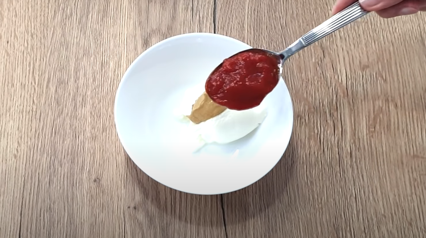 Do pokrojonej cebuli wmieszaj majonez, sól i pieprz i dobrze połącz. Ketchup i musztardę połączyć ze śmietaną (lub jogurtem naturalnym).