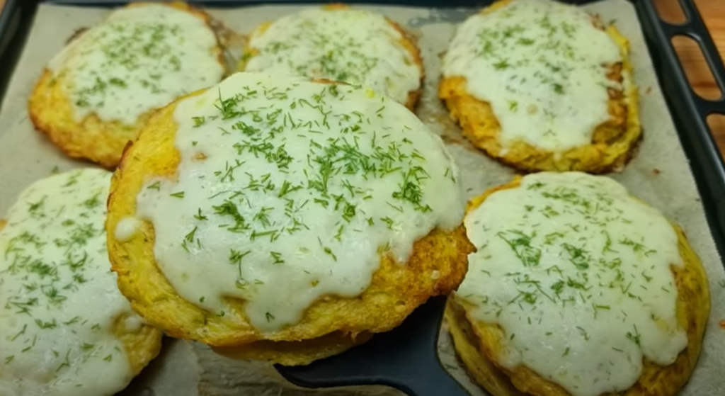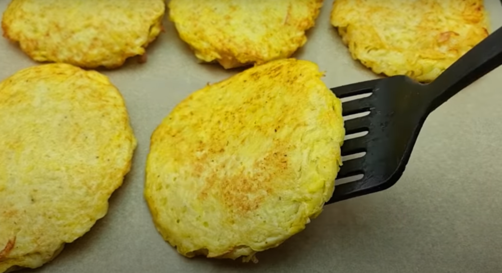 Smaż z obu stron przez około 2-3 minuty na każdą stronę. Usmażone placki połóż na ręczniku papierowym i zajmij się smażeniem kolejnych sztuk. Następnie ułóż wszystkie placki na blasze wyłożonej uprzednio papierem do pieczenia. Włóż do piekarnika nagrzanego do 180 stopni i piecz przez ok. 20 minut.
