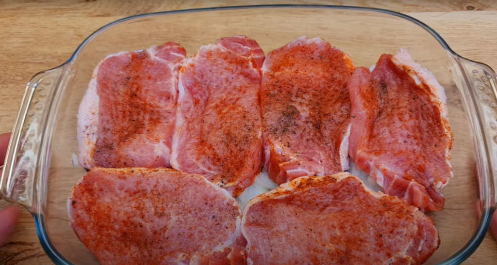 Potrawę doprawiamy solą i pieprzem, a następnie posypujemy czerwoną mieloną papryką. Na talerzu ułożyć pokrojoną cebulę. Dodać do niej plastry mięsa.