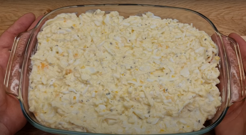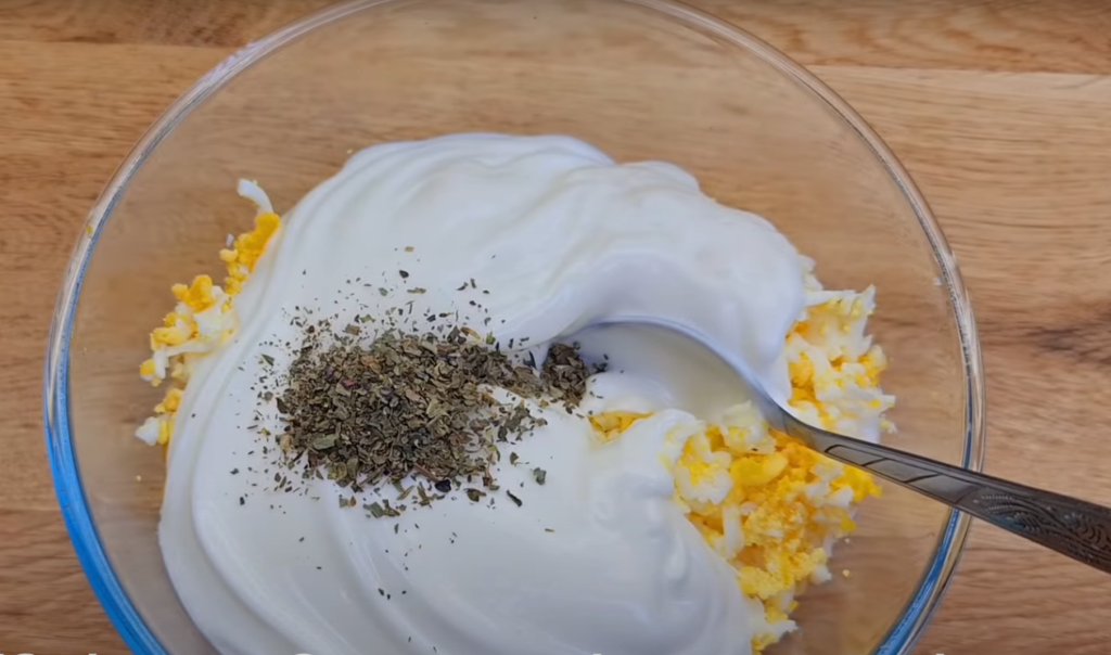 Teraz zetrzyj na tarce twardy ser. Wymieszaj razem 6 łyżek jogurtu naturalnego, sól i bazylię.