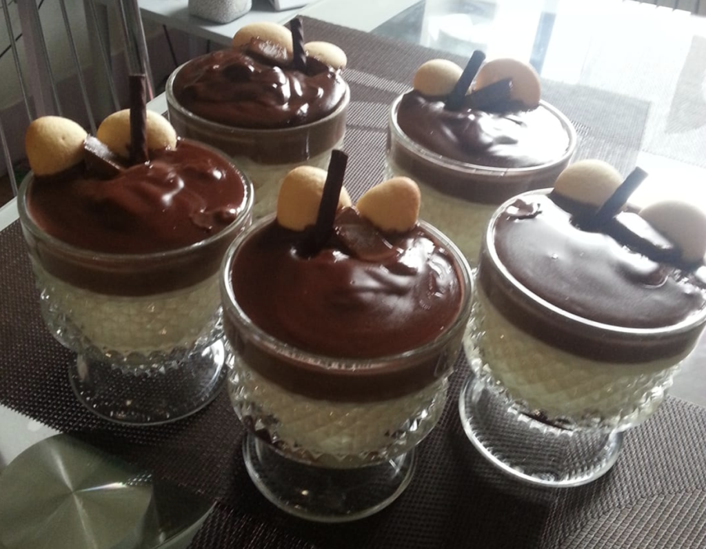 Tak przygotowany deser możesz także wykończyć herbatnikami, biszkoptami albo tartą czekoladową. Nie zapomnij włożyć go do lodówki na kwadrans.