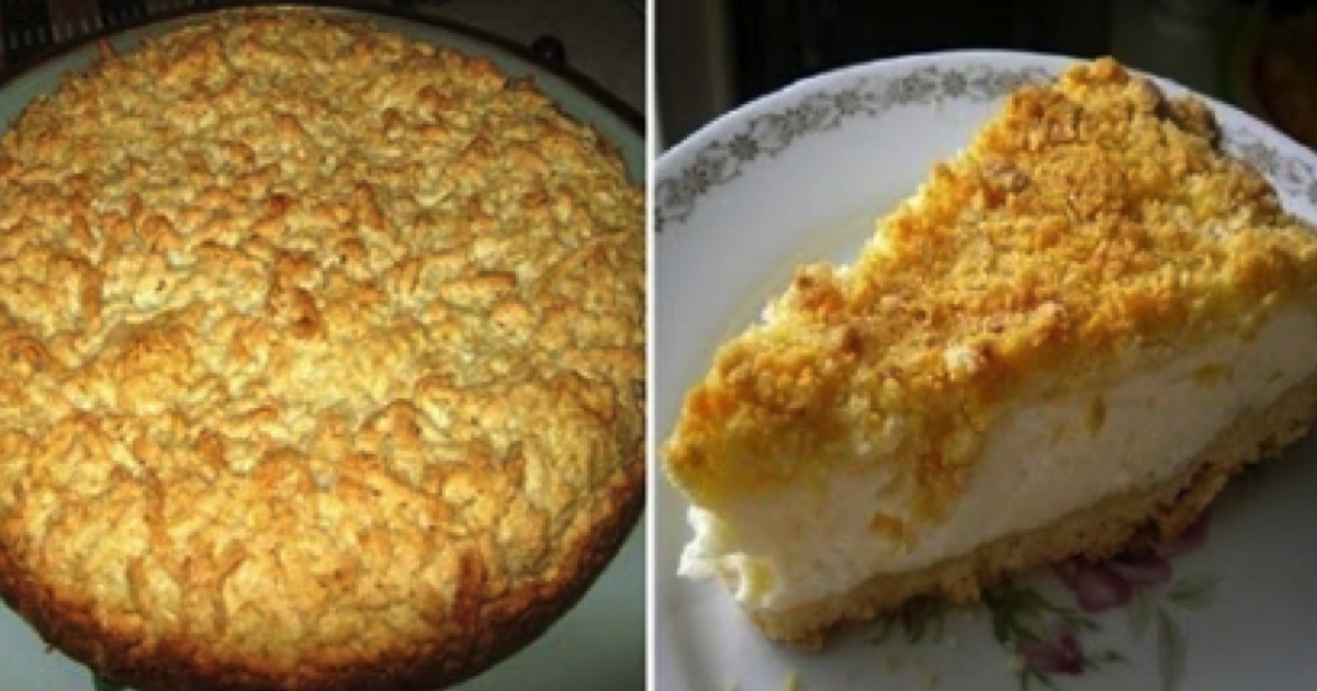 Obie z nich osobno zetrzyj na tarce – to klucz do sukcesu tego ciasta! Pierwszą połowę wysyp do foremki do pieczenia, na nią wyłóż masę z twarogu. Na wierzchu posyp pozostałą, startą częścią ciasta. To wszystko!