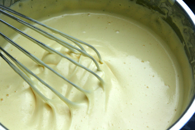 Bierzemy okrągłą blaszkę do pieczenia, powinna mieć średnicę mniej więcej 25cm, i pokrywamy ją papierem do pieczenia. Umieszczamy ciasto w piekarniku aż się zarumieni. Gdy jest już ono gotowe, pozostawiamy je do ostygnięcia, a następnie przecinamy je dwukrotnie poziomo, by powstały trzy warstwy. Przechodzimy do tworzenia kremu. Łączymy jajka z waniliowym i białym cukrem. Po tym kroku dodajemy mleko.