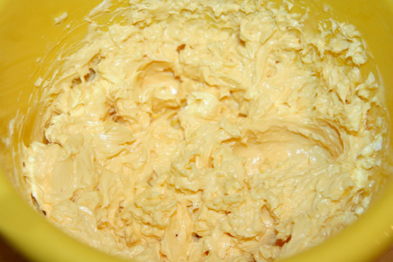 Następnie ogrzewamy całość w wodnej kąpieli i mieszamy do momentu, gdy krem stanie się gęstszy. Pozostawiamy go do ostygnięcia. Masło w temperaturze pokojowej lub lekko roztopione w mikrofalówce traktujemy mikserem i po łyżce stołowej dodajemy do niego już schłodzony krem. Nie przestajemy mieszać.