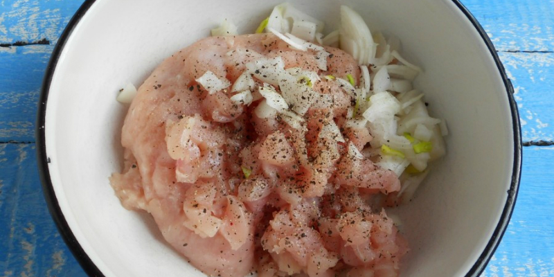 Przygotowanie zaczynamy od umieszczenia mięsa w misce, następnie dodajemy drobno posiekaną cebulę, jajko, pieprz i sól, wszystko dokładnie razem mieszamy.