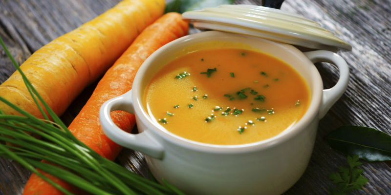 Ponowne wykorzystanie zupy z marchwi ok 340 g. Do posiłku warto dodać ok 50 g kurczaka.